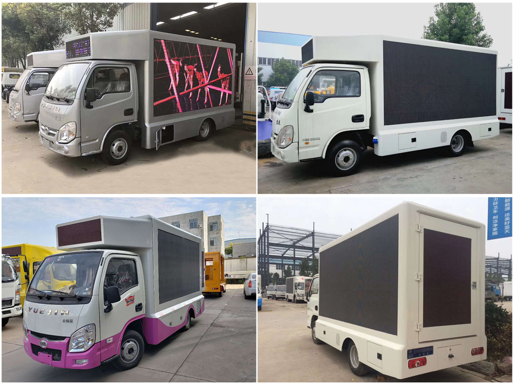 廣告車選裝配置:客戶可根據(jù)需求選裝屏幕清晰度(P10彩屏、P8彩屏、P6彩屏、P5彩屏、P4彩屏)、單面彩屏、雙面彩屏、雙面